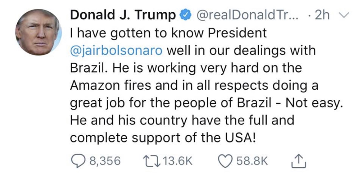 Donald Trump tweets about 🇧🇷