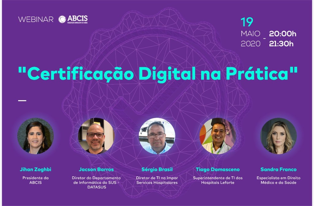 Convido meus amigos e colegas a participarem do Webinar da ABCIS – Associação Brasileira CIO Saúde: Assunto: Certificação Digital na Prática Data: 19 de maio de 2020, 20h-22h Palestrante: