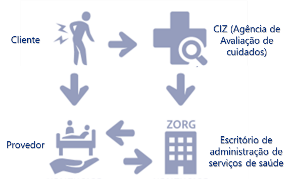 O CIZ entra em contato com o escritório de administração de serviços de saúde (ZORG), que gerencia os cuidados, que discute a situação com o cliente, e a preferência de serviços, como lar de idosos ou se quer continuar morando em casa, desde que seja de uma forma segura. Assim, o cliente e o prestador elaboram um plano de cuidados de saúde ou pode também acrescentar, mas de forma extra financeiramente, outros cuidados. Se o cliente não estiver satisfeito com os cuidados prestados, ele tem a opção de mudar de profissional de saúde contratado, desde que provedor possa acomodá-los. O ZORG também define os requisitos de qualidade e competências mínimas dos profissionais para aquele cuidado específico.