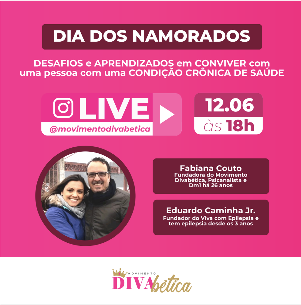 Eu, Fabi, que tenho diabetes tipo 1 desde os 13 anos, e o Edu, meu namorado, que tem epilepsia desde os 3, @vivacomepilesia, vamos bater um papo sobre como é namorar uma pessoa que tem uma condição crônica de saúde.