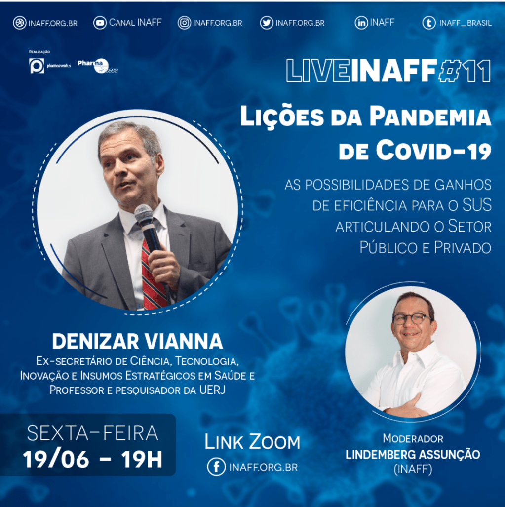 Esta Live contará com a participação de Denizar Vianna, ex-secretário de Ciência, Tecnologia, Inovação e Insumos Estratégicos em Saúde e Professor e pesquisador da UERJ.