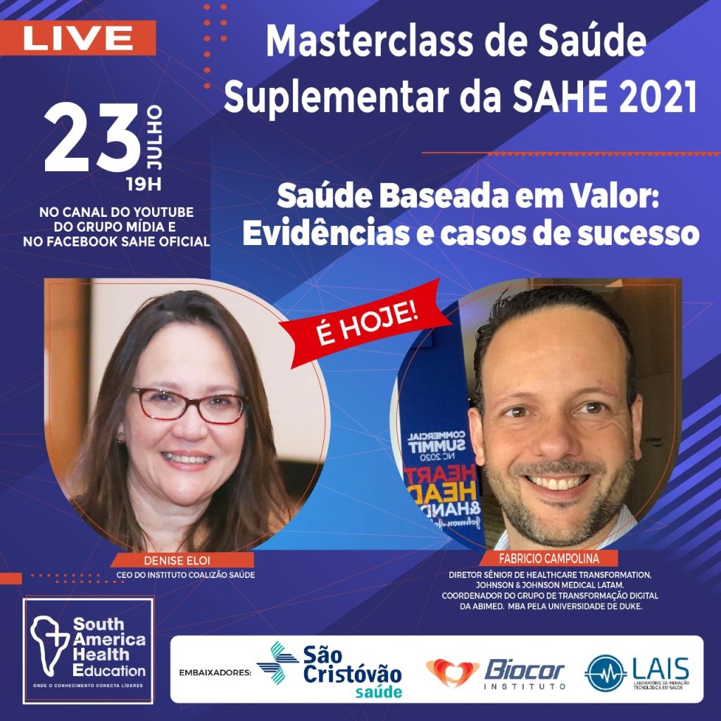 É HOJE! Fabrício Campolina, da Johnson & Johnson, apresenta hoje casos de sucesso de “Saúde Baseada em Valor”. A entrevista acontece às 19h, na Maratona de Lives da SAHE ‘21