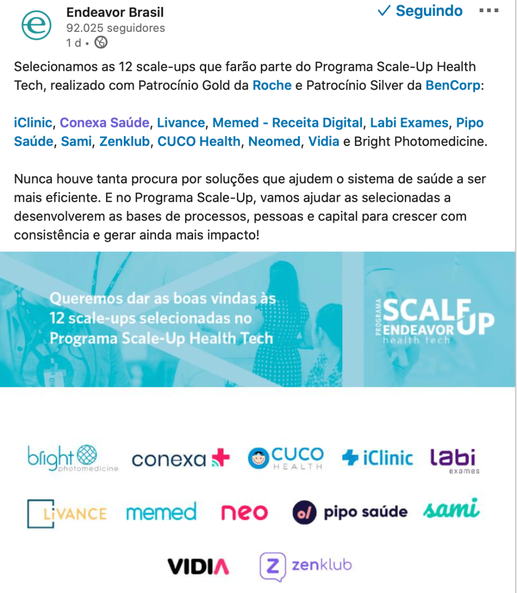 Parabéns a Todas Startups de Saúde selecionadas pelo Programa Scale Up Health Tech 2020.