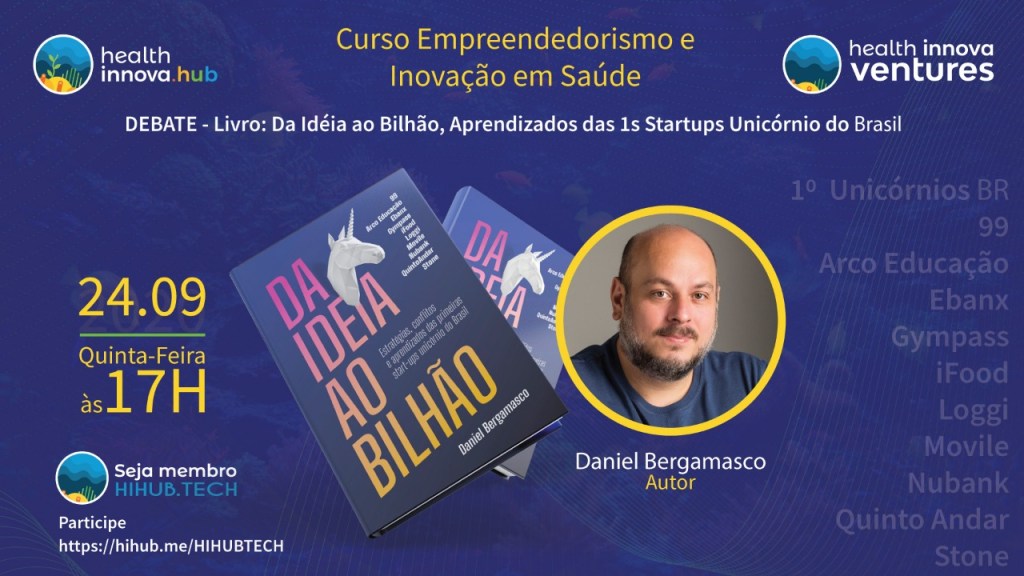StartupSaude.com News@23/09: “Da Idéia ao Bilhão,Aprendizados dos Primeiros 🦄 do 🇧🇷” (24/09,17hs) 🤝DEBATE: Livro: “Da Idéia ao Bilhão, Aprendizados das 1s Startups Unicórnios do 🇧🇷”, com Autor Daniel Bergamasco (24/09,5f,17hs) 🤝Curso:Empreendedorismo e Inovação em Saúde 2020- 4 Ed., by HIHUB 🤝ARQUITETURA HOSPITALAR E O ATENDIMENTO NA SAÚDE 🤝WEBINAR CBEXs + CBEXs Goiás | Economia e…