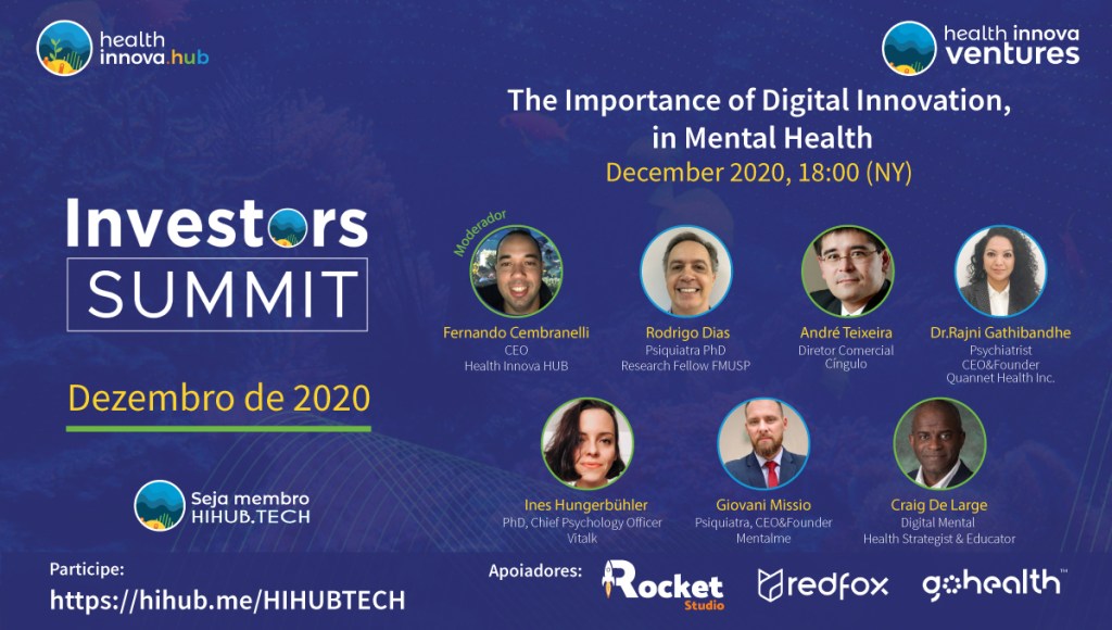 It’s our pleasure to invite you for our HIHUB Investor Summit 2020 Panel, on the Importance of Digital Innovation in Mental Health, with Mental Health Innovators from Brazil and US.