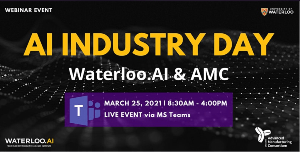 The Waterloo Artificial Intelligence Institute and Advanced Manufacturing Consortium are co-hosting an Industry Day live webinar event.