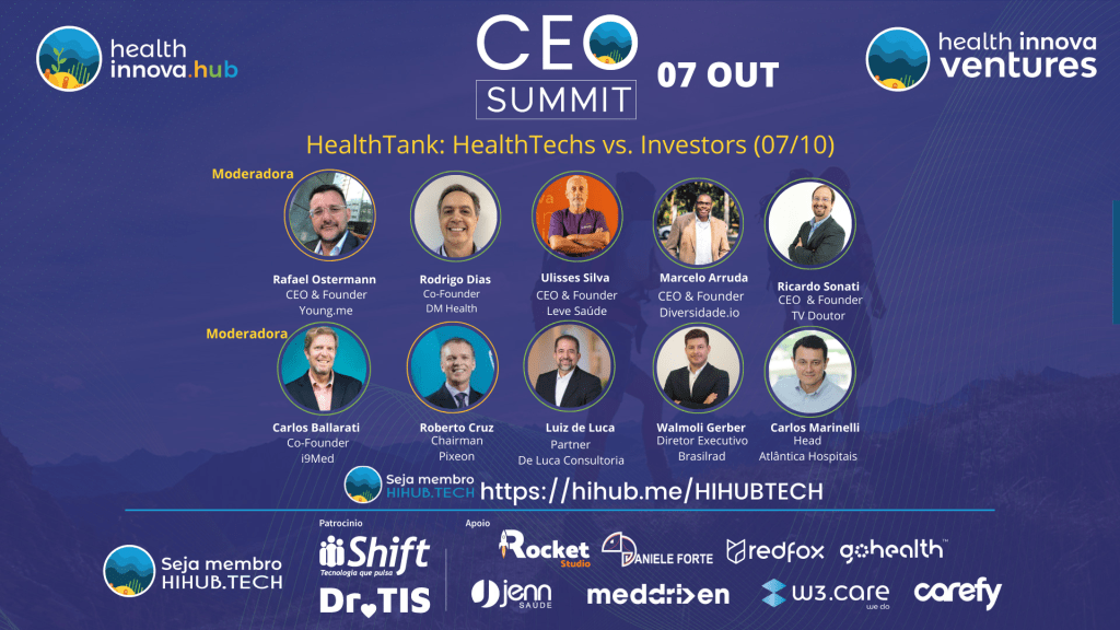 Oportunidade Única p/ HealthTechs apresentarem seus Projetos Inovadores para Investidores e Mentores.
