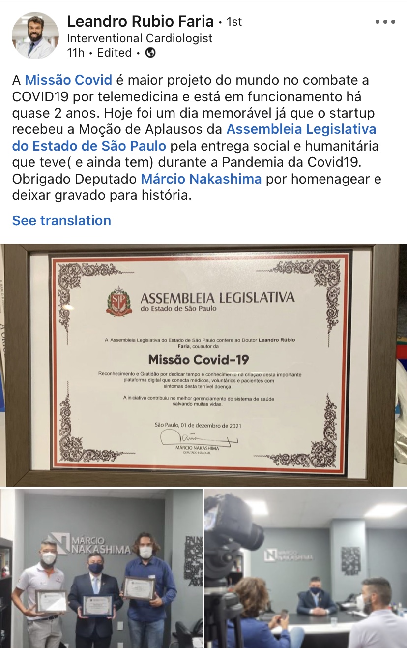 Grande Amigo, Leandro Rubio Faria e TIME Missao COVID.
