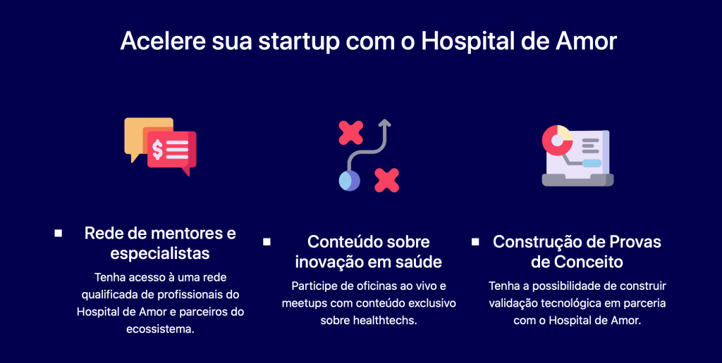 Além disso, as startups estarão conectadas ao ecossistema de inovação em saúde de Barretos (SP) e ao Hospital de Amor, o maior centro de tratamento oncológico da América Latina, presente em 13 estados do país.