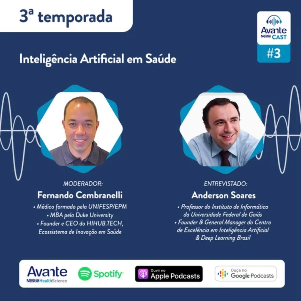Muito Obrigado ao Avante Nestlé Cast, pelo Convite para Moderar o Podcast com Anderson Soares, General Manager do Centro de Excelência em Inteligência Artificial (CEIA) & Deep Learning Brasil, sobre Inteligência Artificial em Saúde.