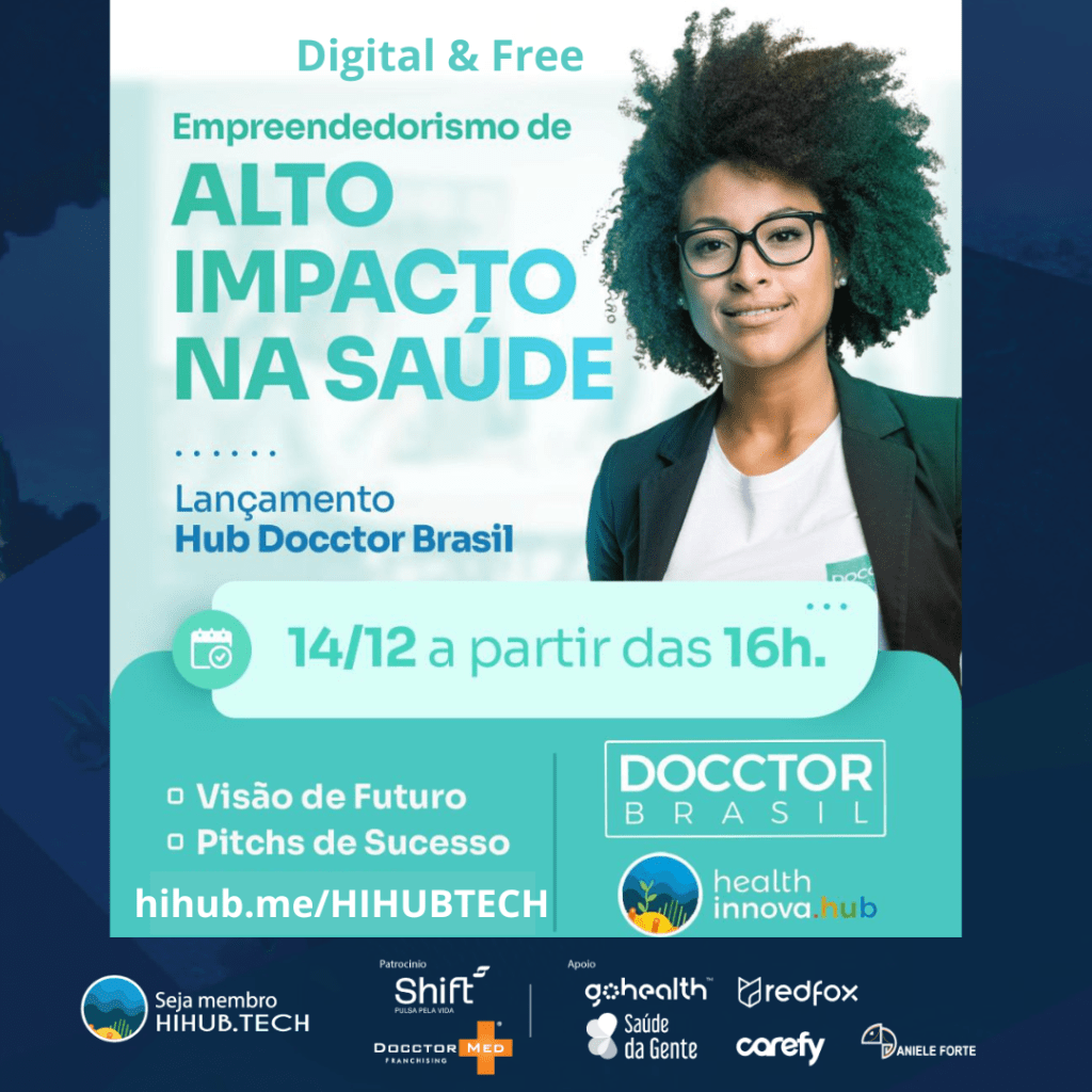 Participe do Lançamento do HUB DocctorBrasil Saúde Acessível, Espaço Excepcional de Co-Working para Empreendedores e Inovadores em Saúde, ao lado do Parque do Ibirapuera.
