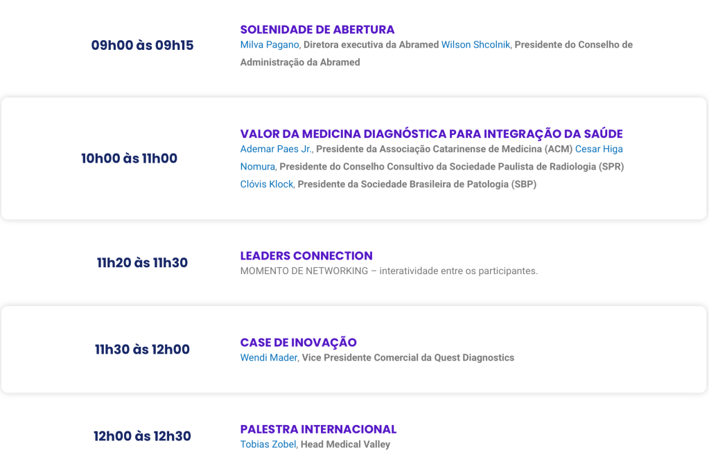 “Com o evento, a Abramed coloca em pauta assuntos pertinentes a toda a cadeia de saúde, além de ser uma importante plataforma de conexão entre os profissionais e as empresas do setor”, finaliza a diretora-executiva da entidade.