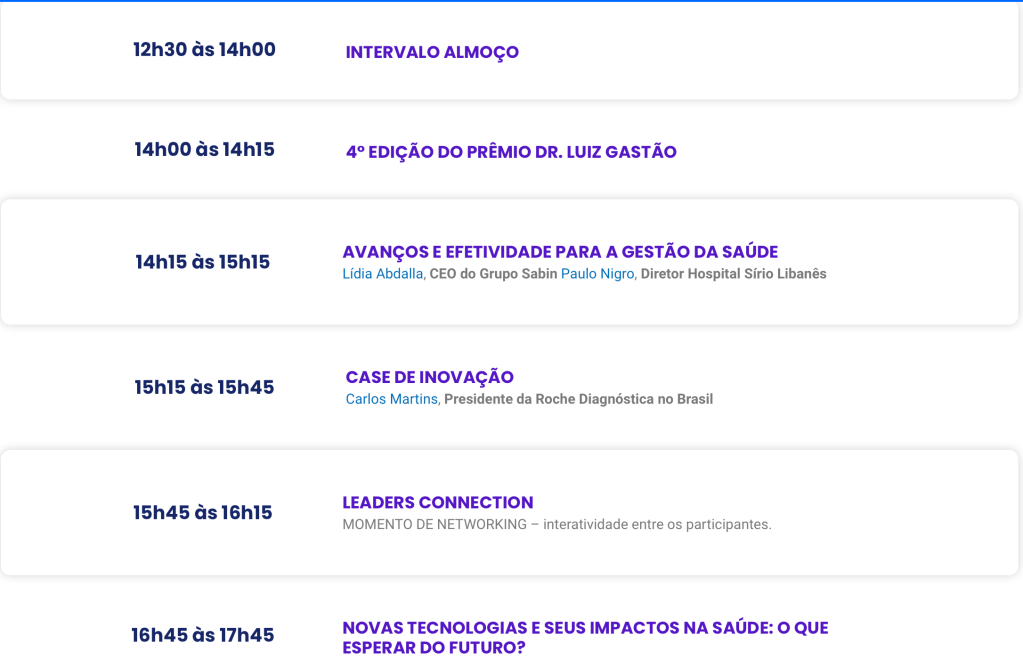 O macrotema deste ano, que permeará toda a programação, é “Saúde Integrada: um caminho para o futuro”, destacando a importância da integração como principal direção para a melhoria da qualidade dos cuidados de saúde, aumento de eficiência e redução dos custos, colaborando, especialmente, para a jornada do paciente e a sustentabilidade de todo o ecossistema de saúde.