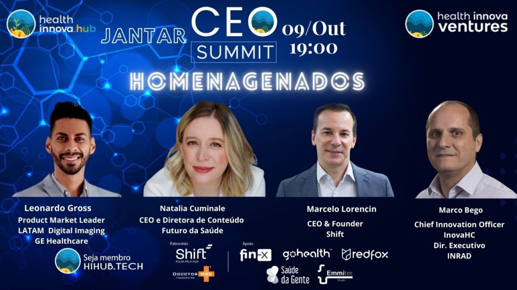 Dia 9/Out, às 19:00, realizaremos a Homenagem aos Líderes Inovadores em Saúde do Health Innova CEO Summit🌟2023 HIHUB.TECH🌎Inovação♾️Saúde🚀