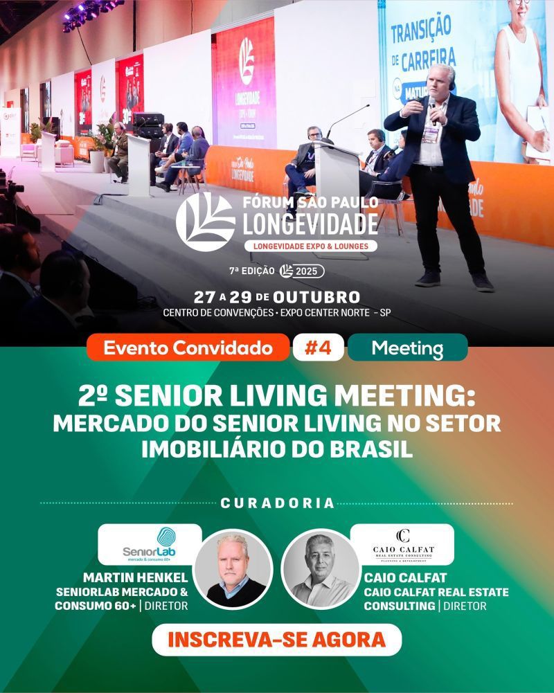 A SeniorLab e a Caio Calfat Real Estate Consulting realizarão o 2o SENIOR LIVING MEETING SÃO PAULO dentro do FÓRUM SÃO PAULO DA LONGEVIDADE.Um mercado que cresce e exige cada vez mais profissionalização e estratégia.